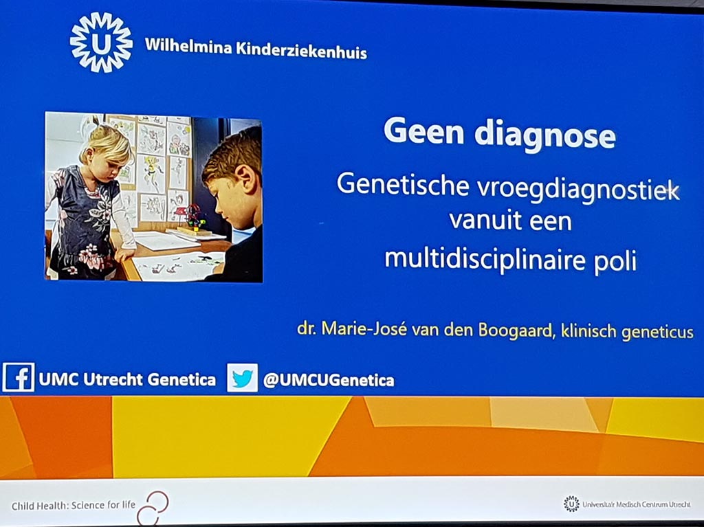 The day started at 9:45 am with a number of plenary presentations ‘from symptoms to diagnosis’. After a welcome word, a number of presentations from both a parent and several doctors and a representative from the VSOP were started: